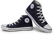 Elevate your footwear collection with the YUKI High-Top Canvas Shoes, where timeless style meets exceptional comfort and durability. These unisex sneakers are expertly crafted with a rugged black canvas upper, offering both breathability and resilience to handle daily wear and tear. Designed with a classic high-top silhouette, they provide enhanced ankle support, making them ideal for all-day wear, whether you're walking, commuting, or enjoying outdoor activities. The shoes feature a durable rubber sole with a unique diamond-patterned tread for reliable traction and slip resistance on various surfaces, from urban pavements to school corridors. The cushioned insole ensures soft comfort underfoot, helping reduce foot fatigue, while the reinforced toe cap and sturdy double-stitched seams enhance durability and add a stylish contrast to the black canvas. A secure lace-up closure with metal eyelets allows for easy adjustability, ensuring a custom fit every time you wear them. Finished with YUKI’s distinctive branding on the side, these high-tops showcase an effortlessly cool, vintage-inspired look that pairs well with a variety of outfits, from casual jeans to sporty looks.