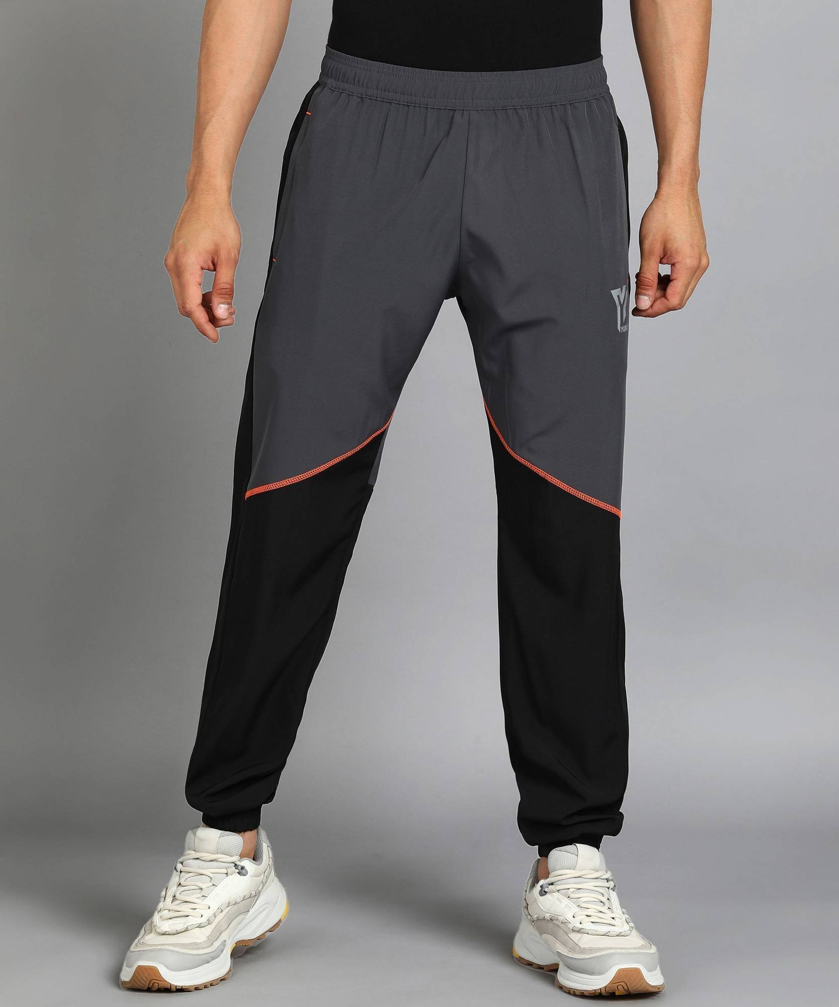 YUNEK Colorblock Men Grey Track Pants