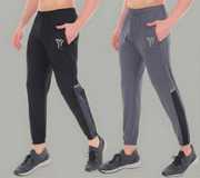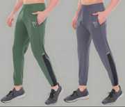 Pack of 2 Men Solid Black, Green Track Pants