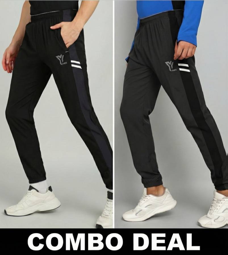 YUNEK Solid Men Grey, Black Track Pants