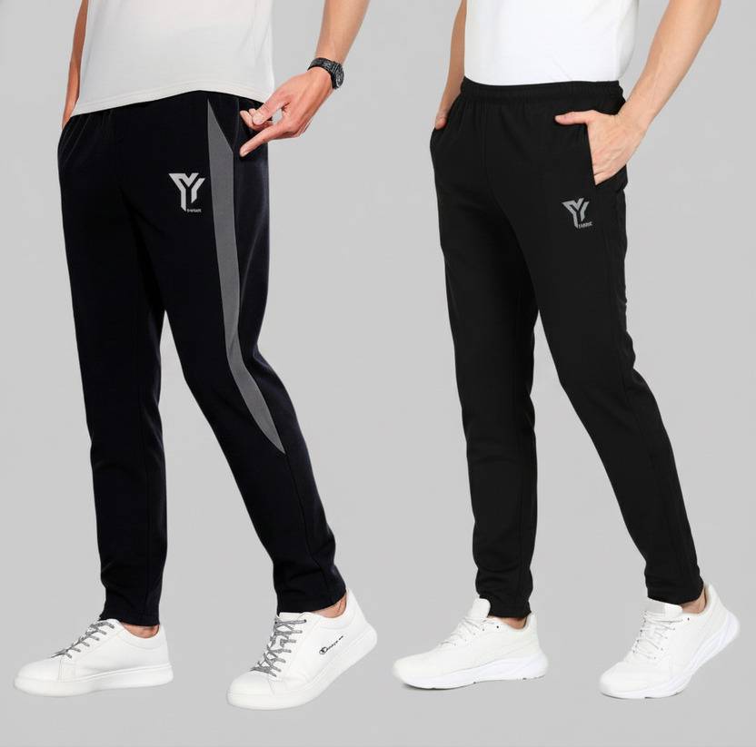 YUNEK Solid, Striped Men Black, Black Track Pants