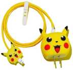 YuniKase Charger Cover for iPhone 18W-20W Charger, 3D Cartoon Design Picachu Spiral Cover Cable Protector (Yellow)