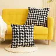 Upgrade your home décor with this stylish and functional cushion cover that combines comfort, sustainability, and modern design. Measuring 16x16 inches, this cushion cover features a bold diamond pattern in elegant shades of black, white, and teal – perfect for enhancing your living room, bedroom, or office space.