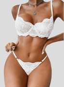 Elegant Design: Features spaghetti straps and scalloped lace trim to beautifully highlight your curves. Flattering Fit: High-leg lace thong bottom accentuates and elongates your legs. Charming Details: Underwire V-neck design with floral lace fabric enhances femininity. Customizable Comfort: Hook-and-eye back closure and adjustable straps ensure a perfect fit. Premium Fabric: Made with lightweight, breathable lace for a soft and luxurious feel. Versatile Wear: Ideal for romantic occasions like Valentine's Day, honeymoons, and anniversaries. Special Moments: Perfect for bridal showers, boudoir shoots, and bachelorette parties. Stylish and Functional: Combines elegance and comfort for every sweet and memorable night.