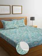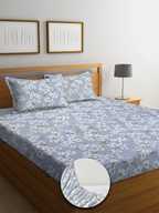 YUTERA Cotton King Fitted (Elastic) 310 TC Floral Bedsheet (Pack of 1, lavender)
