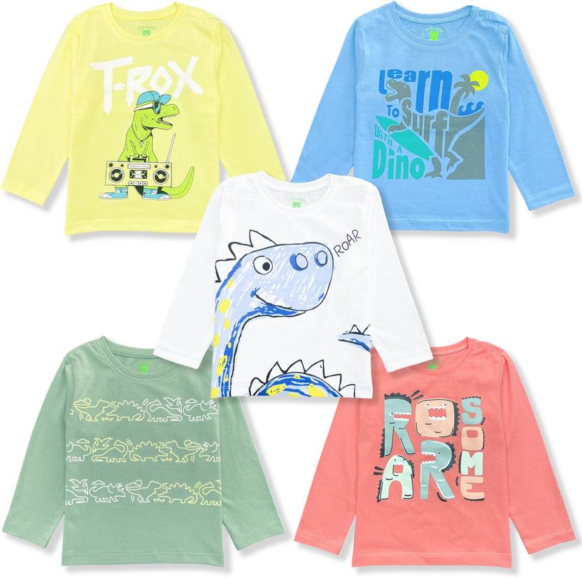 YUV Boys & Girls Printed Pure Cotton Regular T Shirt (Multicolor, Pack of 5)