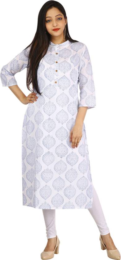 Yuvakshi Women Printed Cotton Blend A-line Kurta (White)