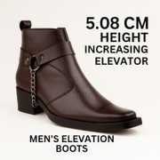 Men's 2" Heel Height, Stylish Chain Detail Brown Casual Formal outdoor AnkleBoot