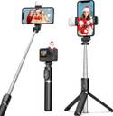 yuvva Bluetooth Selfie Sticks with Remote and Selfie Light Tripod (Black, Supports Up to 500 g)