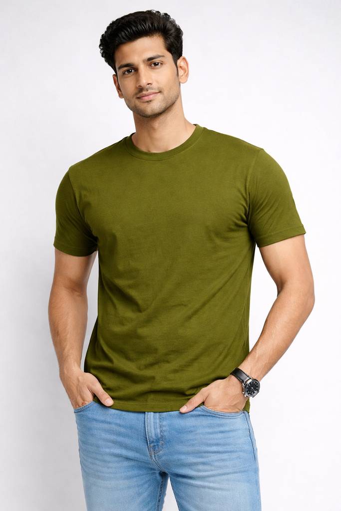 yuza Solid Men Round Neck Dark Green T-Shirt