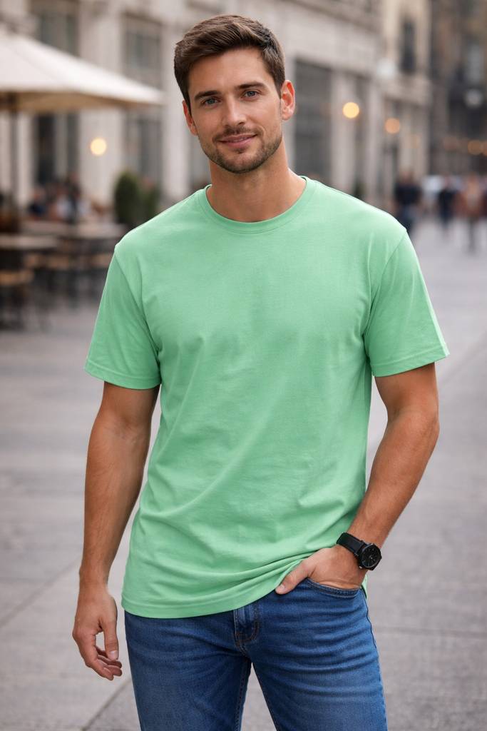 Men Solid Round Neck Cotton Blend Light Green T-Shirt