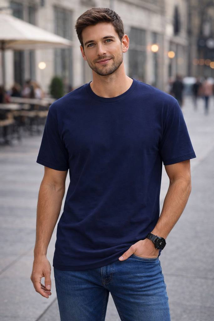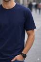 Men Solid Round Neck Cotton Blend Navy Blue T-Shirt