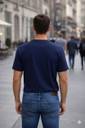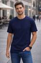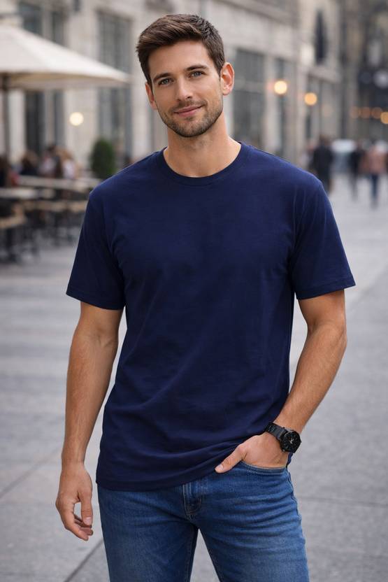 yuza Solid Men Round Neck Navy Blue T-Shirt