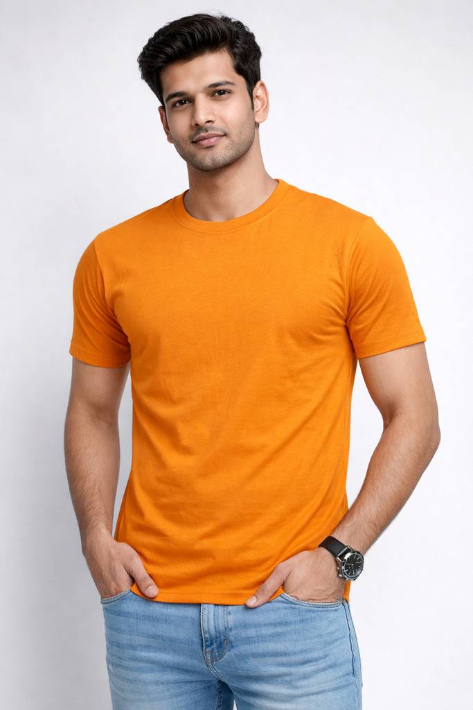 Men Solid Round Neck Cotton Blend Orange T-Shirt