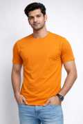 yuza Solid Men Round Neck Orange T-Shirt