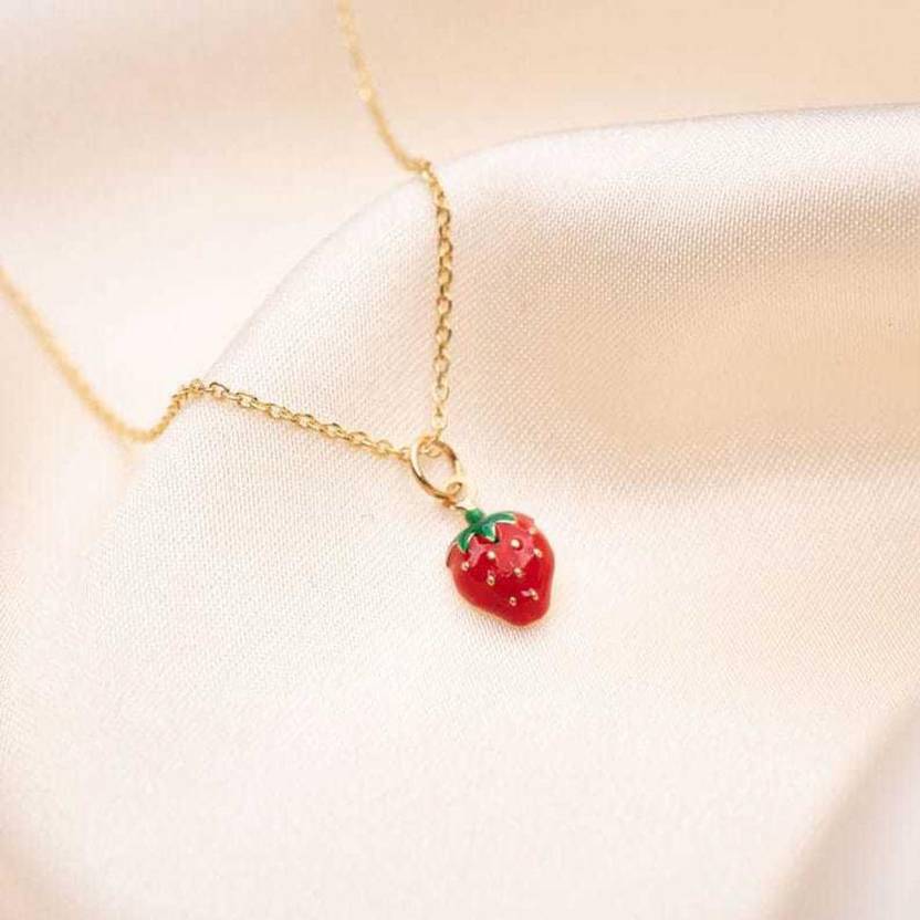 YU Fashions Minimal Strawberry Pendent Necklace Chain Gold-plated Plated Steel Layered