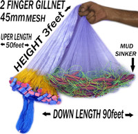 A to Z 2 FINEGER GILLNET 45mm, MUD SINKER, HEIGHT 3F, UP LENGHT 45F, DOWN LENGHT 90F. Fishing Net (Multicolor)