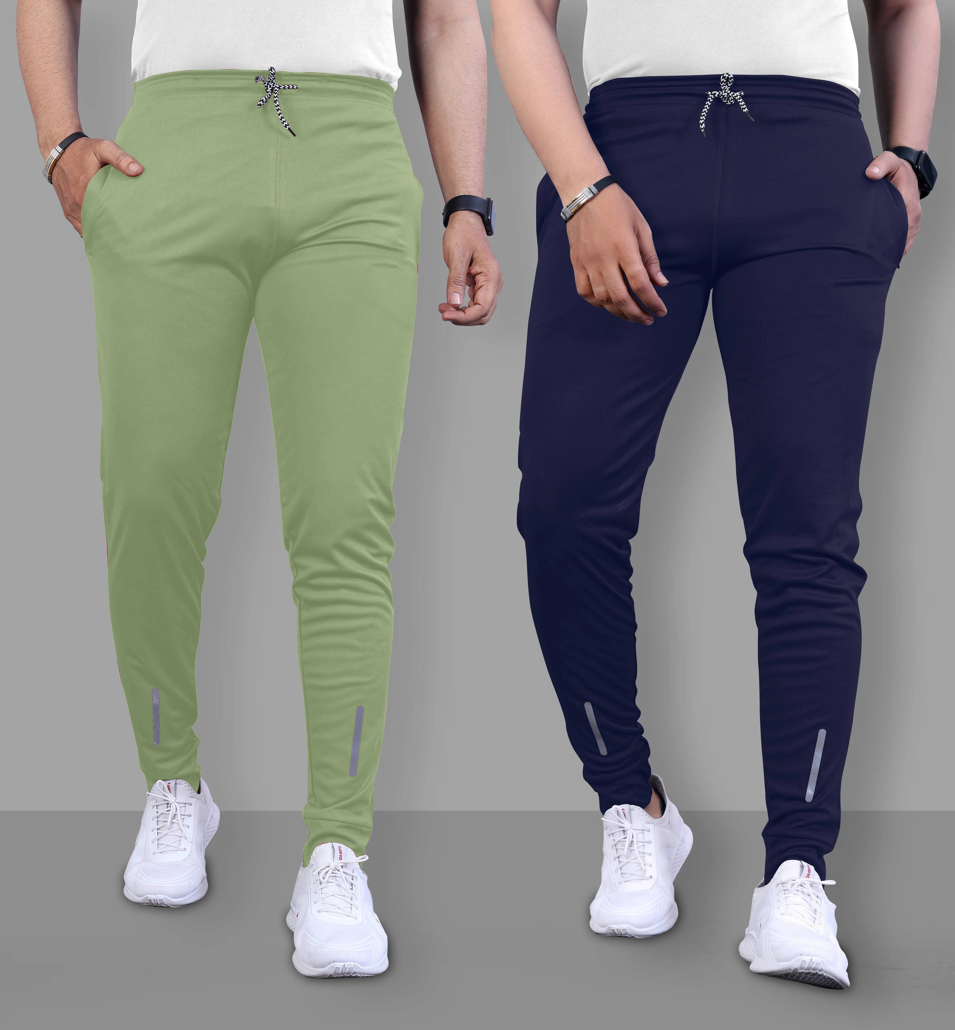Z-DEVIL Pack of 2 Men Solid Blue, Light Green Track Pants