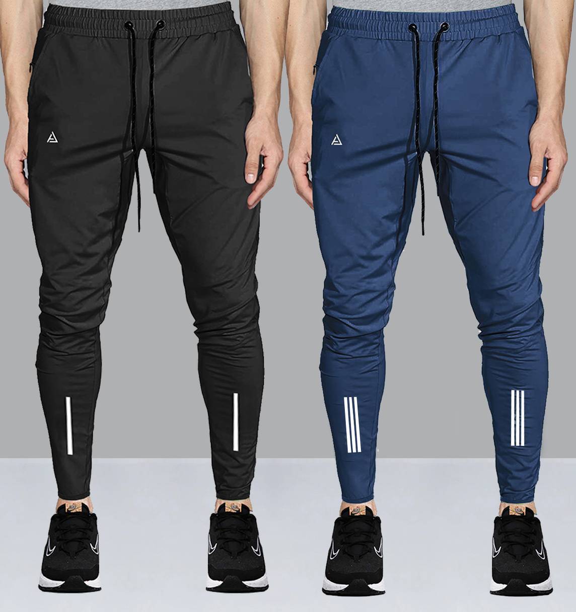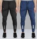 Pack of 2 Men Striped Black, Blue Track Pants