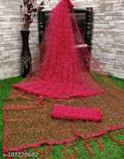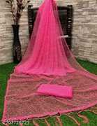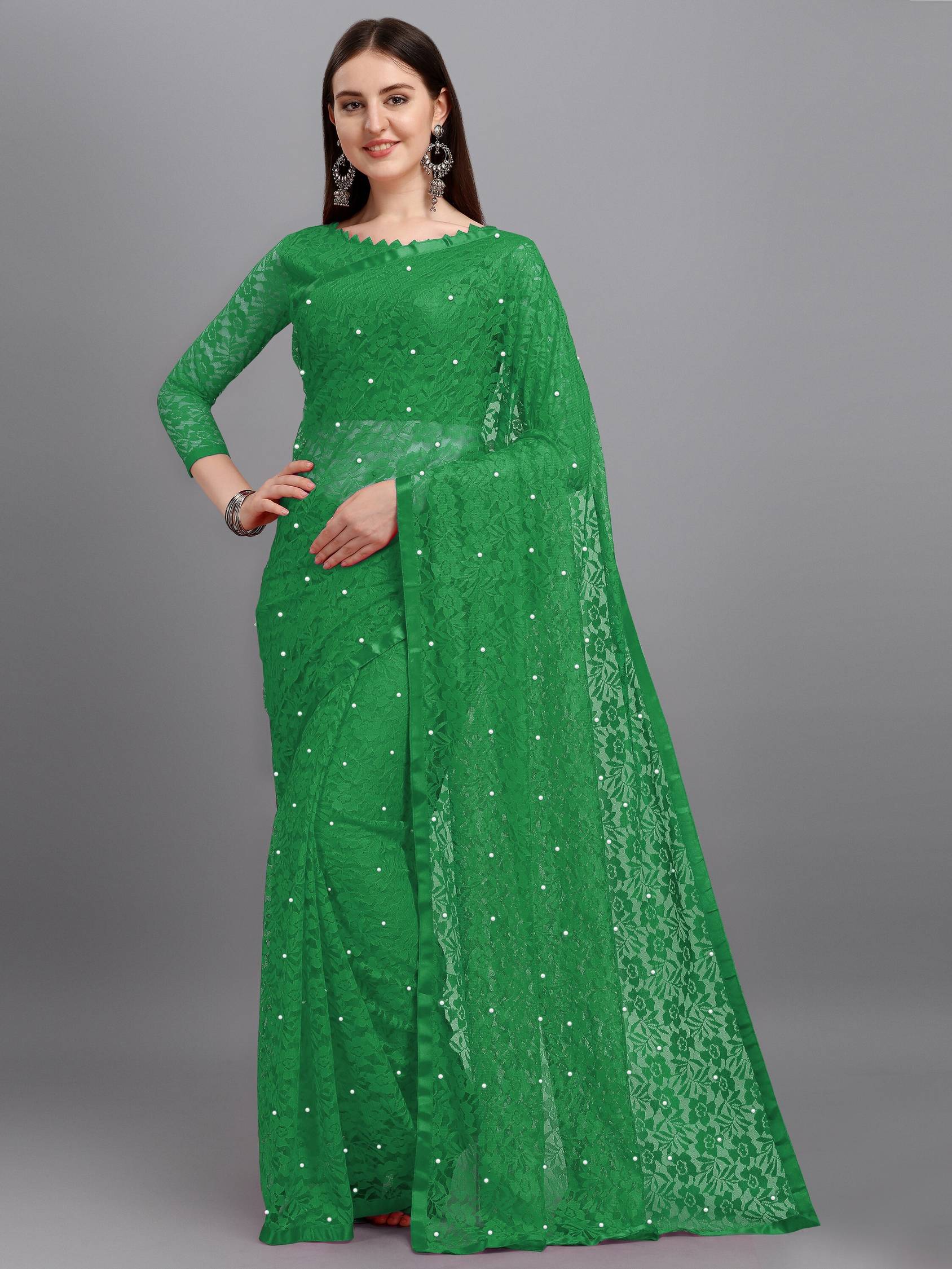 KRIVITY Self Design Bollywood Net Saree (Red)