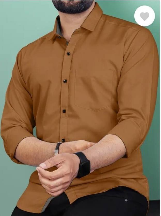 Men Regular Fit Solid Spread Collar Casual Shirt