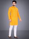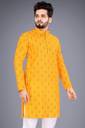 Z zedup Men Printed Cotton Blend Straight Kurta (Yellow)