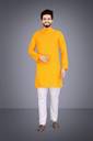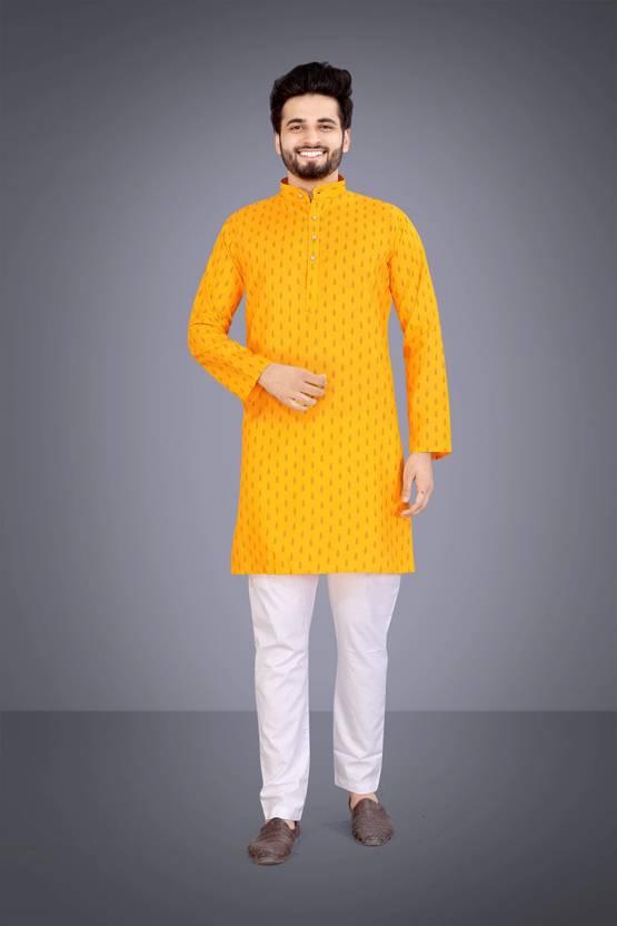 Men Printed Cotton Blend Straight Kurta (Yellow)