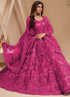 Featuring embroidered traditional motifs adorned with heavy zari work, this women’s lehenga and choli set with dupatta reflects a rich and detailed surface. The intricate needlework gives the lehenga an ornate finish, while the choli carries fine embroidery that enhances its depth. In addition, the dupatta is styled with lace detailing and wavy edges, adding further refinement to the overall design. Moreover, the combination of textures ensures a graceful visual appeal.
