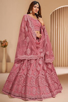 Boasting quality materials, this lehenga choli combines satin blend and net for lehenga, net and satin for blouse, net for dupatta, and satin with cancan for inner layer. Satin blend offers smooth texture and subtle sheen, while net adds volume and lightweight structure to flared lehenga. Blouse in net and satin provides breathable support and soft touch against skin. Net dupatta adds a sheer layer that highlights embroidery and enhances overall look. Satin inner layer with cancan supports lehenga shape while allowing comfortable movement.