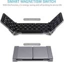 This sleek Bluetooth keyboard has a compact and foldable design, making it portable enough to be carried in your bag or pocket. Also, when you unfold the keyboard, it switches on, thanks to its magnetic power on feature. To switch it off, just fold it back.