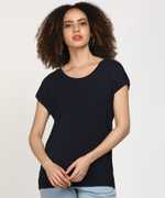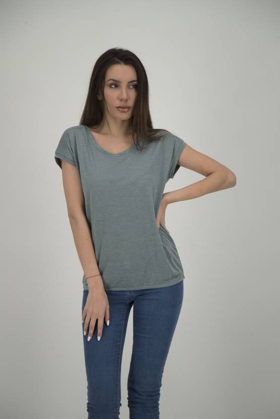 Women Solid Round Neck Cotton Blend Green T-Shirt