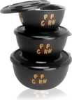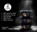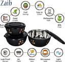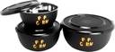 Zaib Stainless Steel Serving Bowl black microwave steel bowl set for food reheating and storage (Pack of 3, Black)