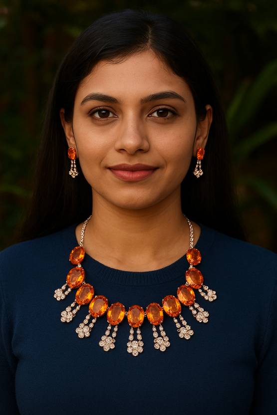 zainab Alloy Gold-plated Orange Jewellery Set (Pack of 1)