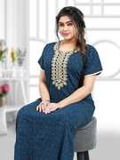 Trending nighty comes with maroon nighty with collar Style and Unique product of printed & blended half sleeve with . The collection of nighties comes in various colors. the printed velvet nighty perfectly suits you and your personality and keep comfortable