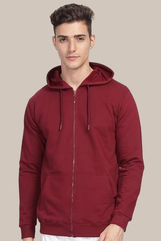 Men Full Sleeve Solid Hooded Sweatshirt