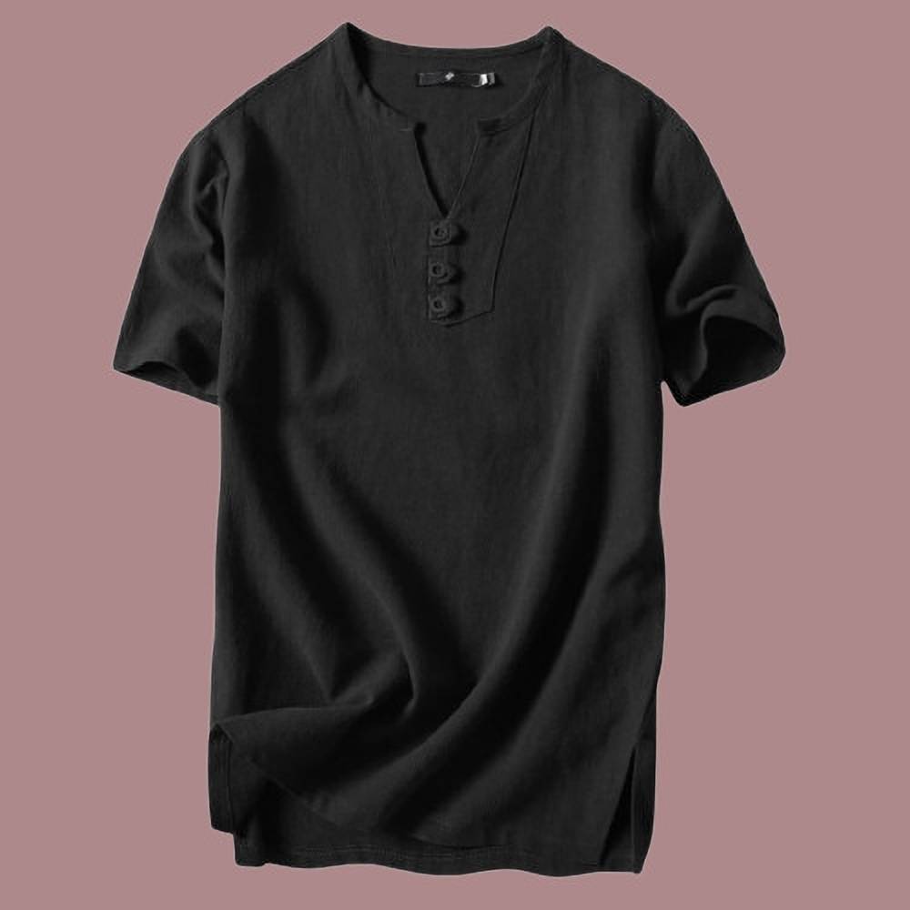 Men Solid Cotton Blend Straight Kurta (Black)
