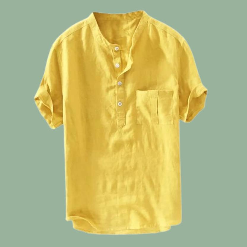 Men Solid Cotton Blend Straight Kurta (Yellow)