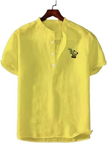 Men Solid Cotton Blend Straight Kurta (Yellow)