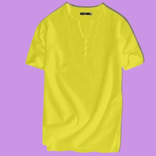 Men Solid Cotton Blend Straight Kurta (Yellow)