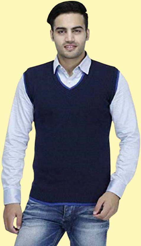 ZAKOD Solid V Neck Casual Men Dark Blue Sweater