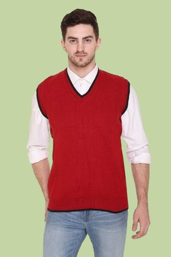 ZAKOD Men Solid V Neck Red Sweater
