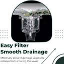 Engineered for complete drainage, with a gently sloped bottom that prevents standing water inside the bowl. Optimized angle keeps glassware from falling when placed in the sink