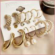 Combo Of 9 Pair Pearl, Stone, Hoops, And Stud Earrings