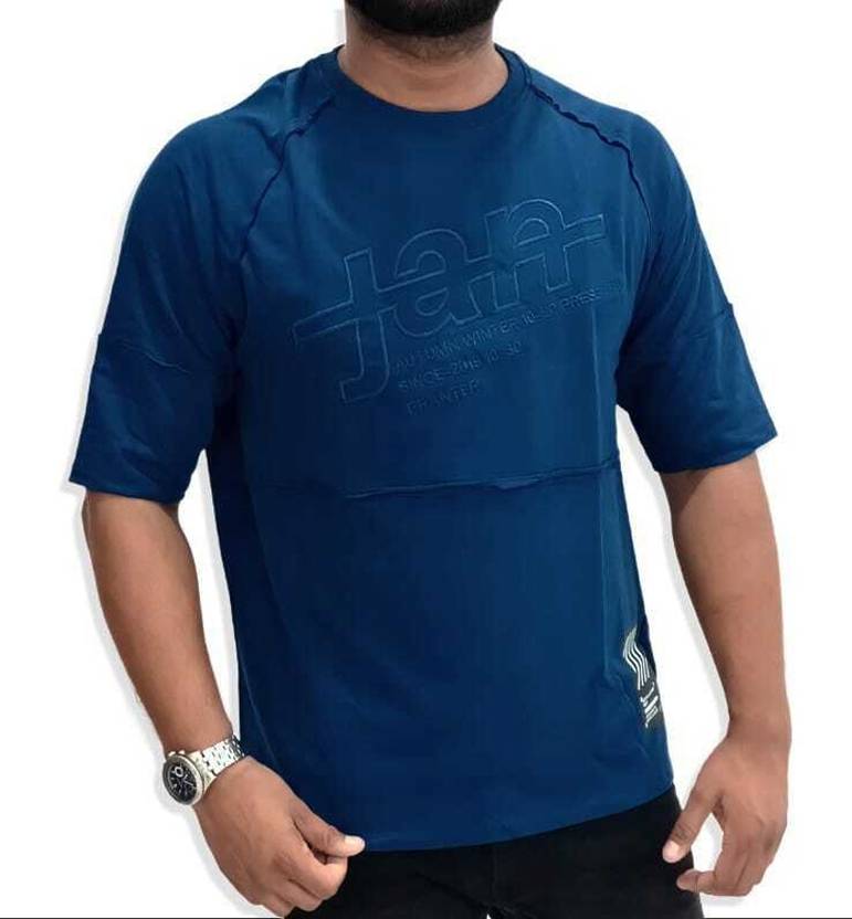 Men Embroidered Round Neck Cotton Blend Navy Blue T-Shirt