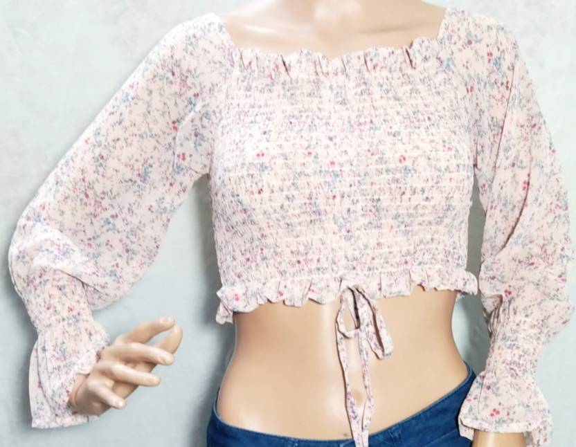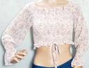 Trendy Top, Chiffon, Waist Cinch, Floral prints, Off Shoulder, Cropped