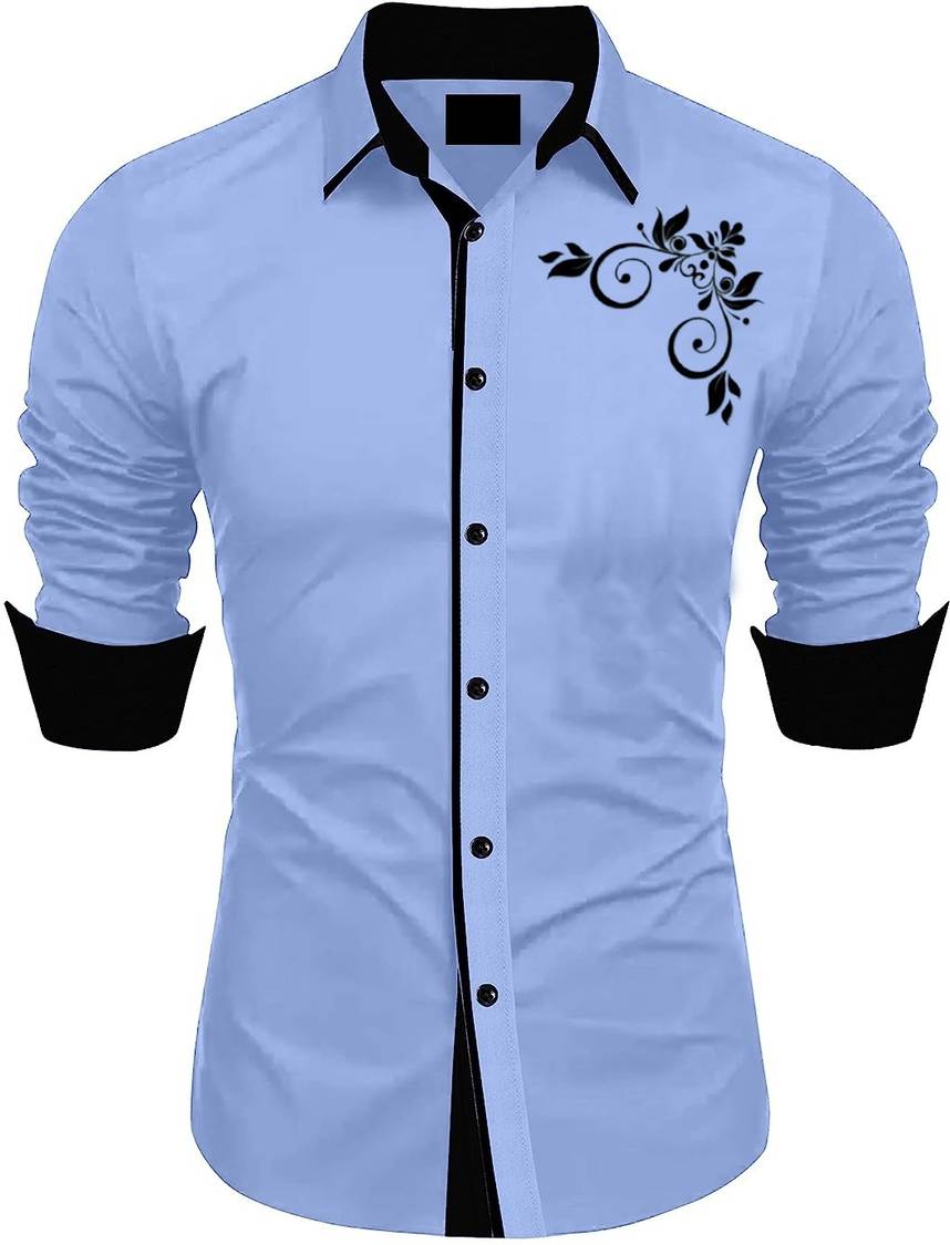 ZORAHICA Men Floral Print Casual Blue Shirt