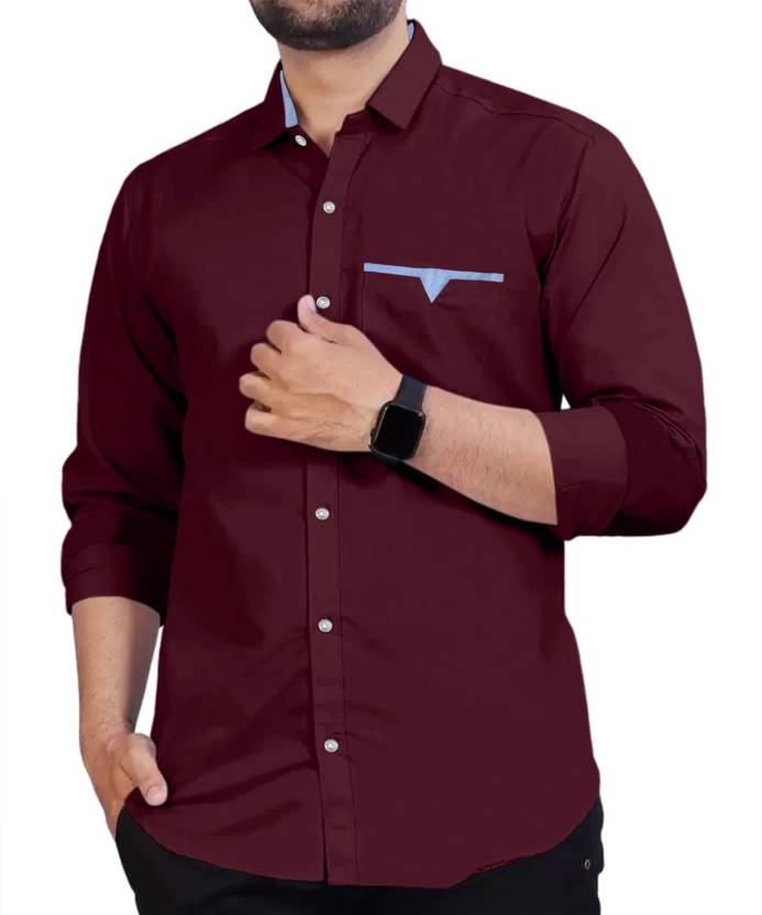 Men Regular Fit Solid Spread Collar Casual Shirt