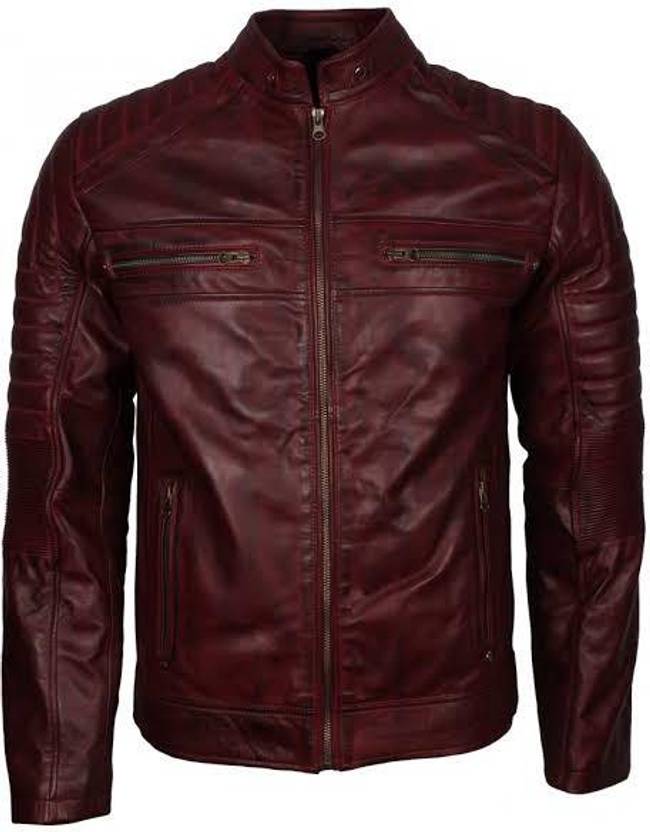 Men Solid Leather Jacket