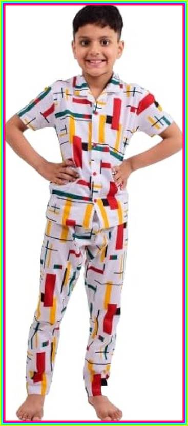 Boys & Girls Night Suit Set Multicolor Graphic Print