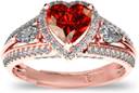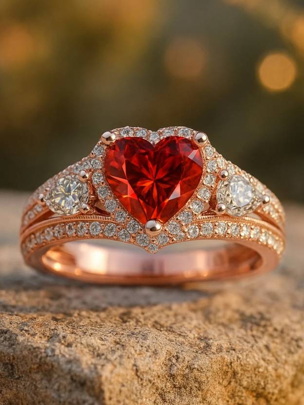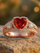 Rose Gold Ruby Diamond Cut Heart Pure Silver Propose Ring